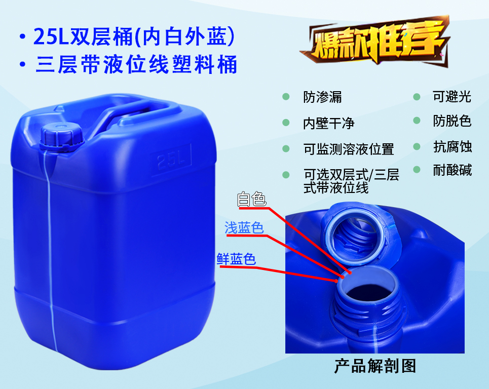 25升30升雙層雙色化工桶、三層三色帶液位線塑料桶、防靜電塑料桶