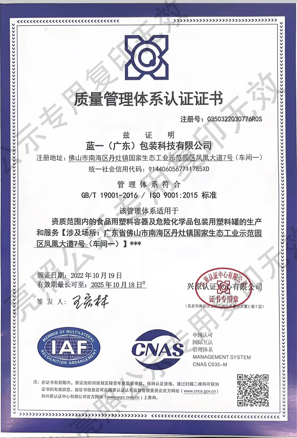 佛山藍一包裝廠創建于2013年,是一家專業生產 塑料包裝罐(桶)的大型民營企業。現有固定資產壹仟多萬元,廠房5000平方米,一流的人才 創造-流的品質,公司擁有一支從事塑料包裝行業二十多年技術人員組成的專業隊伍。并擁有一支 高素質的專業營銷隊伍和高素質的管理團隊。產品質量已經達到檢測歐洲標準。
